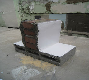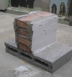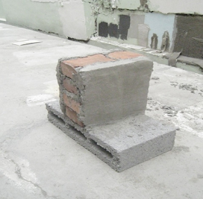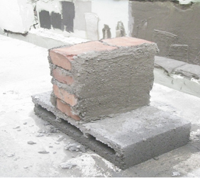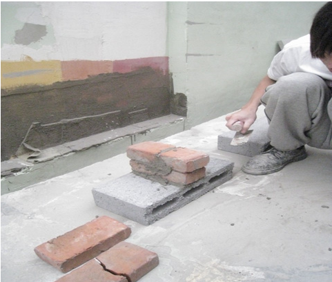 2.禹理論– 將紅磚用添加樂土防水粉的水泥砂漿砌於空心磚上