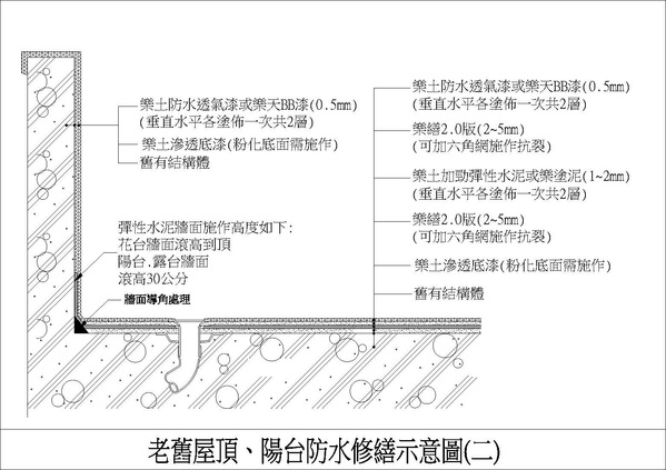 而再回顧前述老屋屋頂漏水的主因之一:老屋結構老化承載能力降低造成屋面龜裂,所以加鋪過重的作法,會讓房屋結構產生變形裂縫,而把新做的防水層再度拉裂。