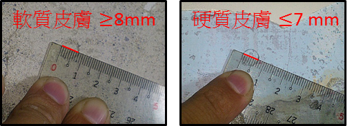 C.軟質皮膚挖除厚度大於5mm, 挖除坑洞直徑超過30cm, 真皮層使用抗滲水泥砂, 表皮層使用本色樂繕, 粉底使用白色樂繕。