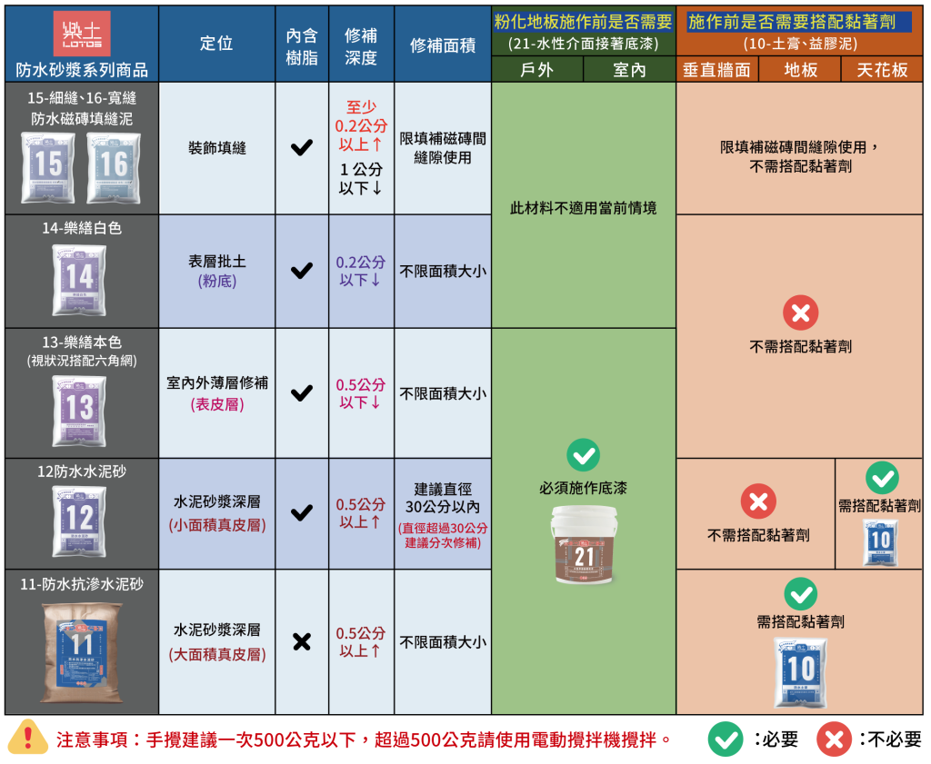 DIY修繕並不只為了省錢, 更重要的是將工法落實,每個材料攪拌需要按配比添加適當的水量,並且要自行抹壁,施工過程非常不輕鬆,需要清創壁面,需要先評估修繕面積及自己的施工能力,以免徒勞無功。