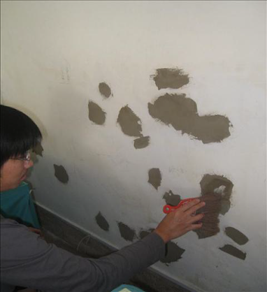 1. 原先有問題部位不只於牆壁表層, 甚至深入壁面幾mm.