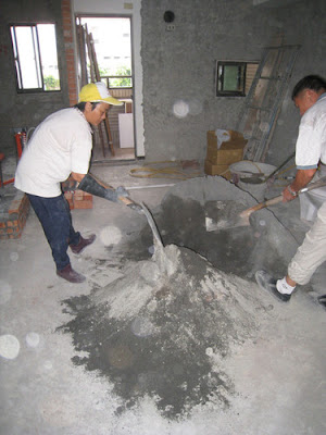 這種利用人力攪拌的方式, 其實全省各地都很常看到,主要因為案場不大, 空間不足, 及現場無電源等等因素,使得很多工班是不用機械攪拌的,但這是工程界不好的習慣, 也是造成工程品質良莠不齊的原因。採用這種方式,現場的監造必須要嚴格要求拌勻,(不是不知庶民艱苦,但這樣才能確保品質)