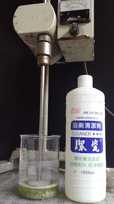 然後用市售的浴室清潔劑, 經過攪拌後,