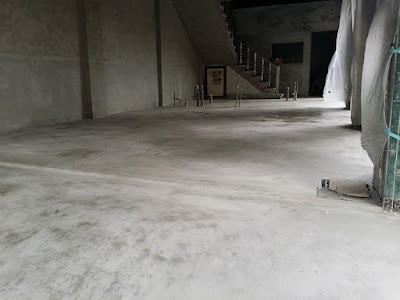 將水泥與砂混合攪拌後, 直接鋪於地板,