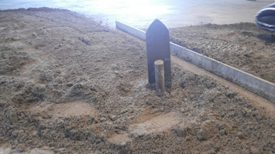 將水泥砂混合後, 加水攪拌, 鋪平,