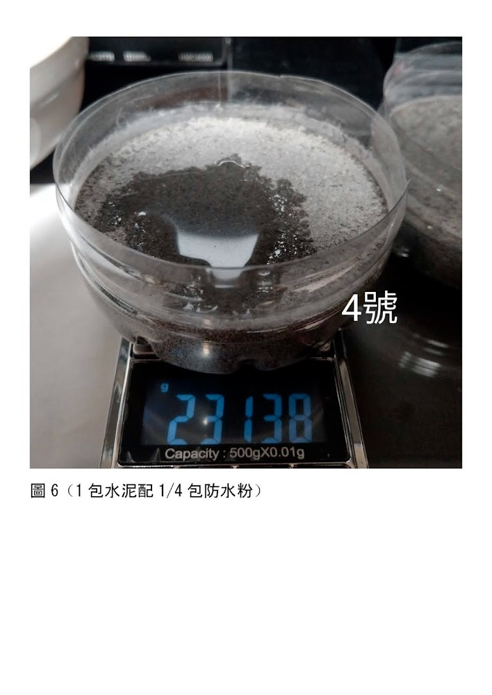 高雄的承尚建設, 就是希望利用樂土防水粉來改善軟底吸水率的問題, 但是跟工班協調不成,原本以為他們會放棄這個想法, 沒想到他們很有研究精神, 索性將工班使用的水泥砂配比, 搭配添加不同比例的防水粉, 觀察不同階段的狀態以及吸水率, 包括